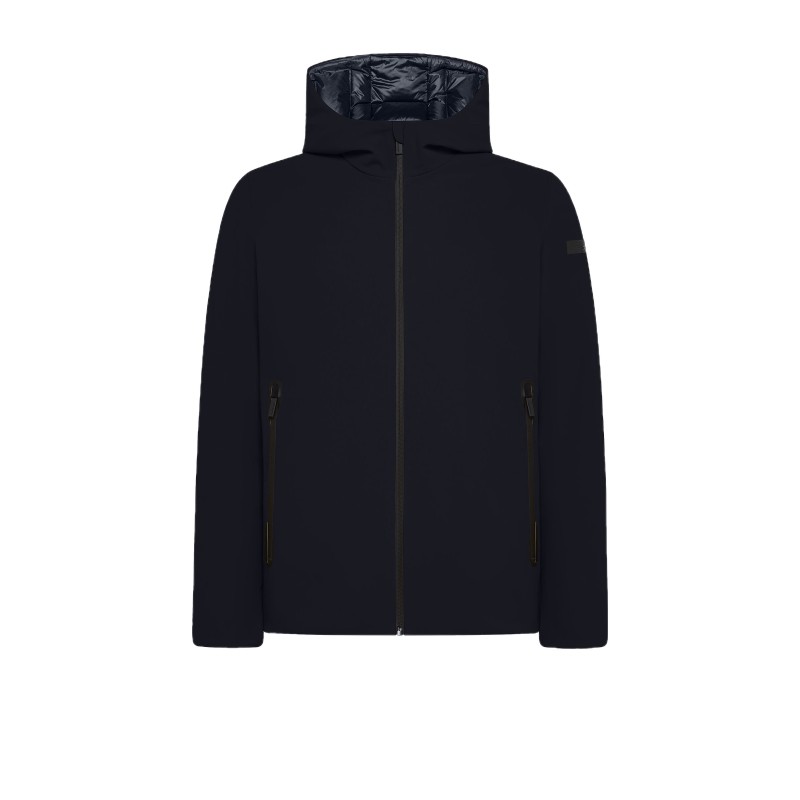 Zip closure with zipper. Additional rain cover is provided by the heat-sealed shoulder.