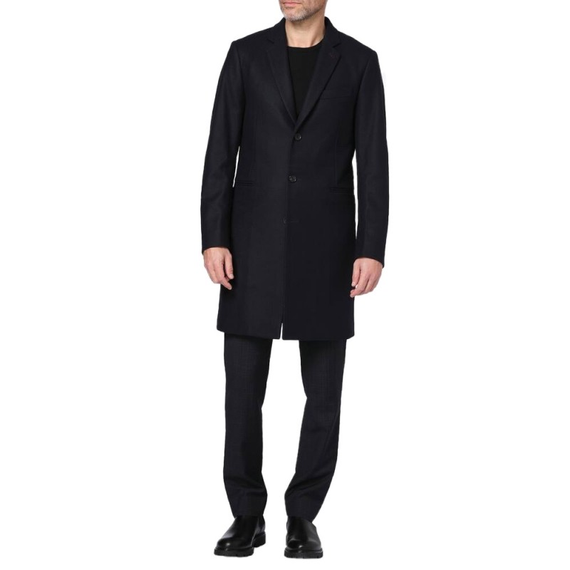 Front welt pockets, inside pockets, slit pocket on the chest, sleeves with open buttonholes, back slit, button closure.