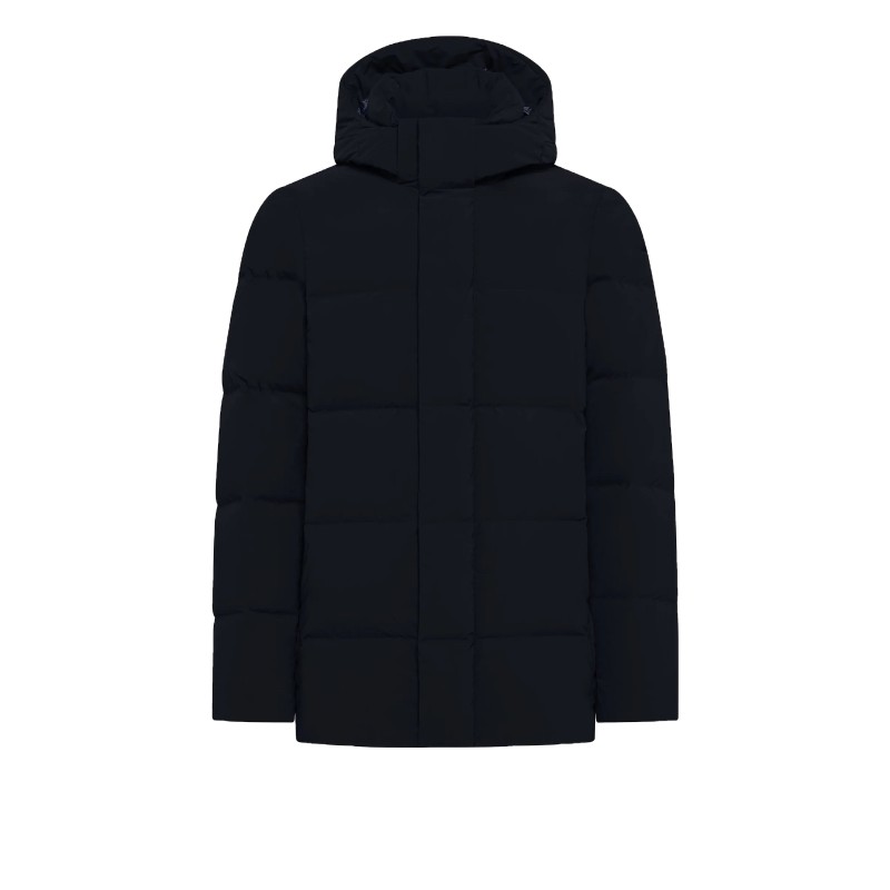 Giubbotto con cappuccio rimovibile realizzato in tessuto tecnico antivento e antipioggia.